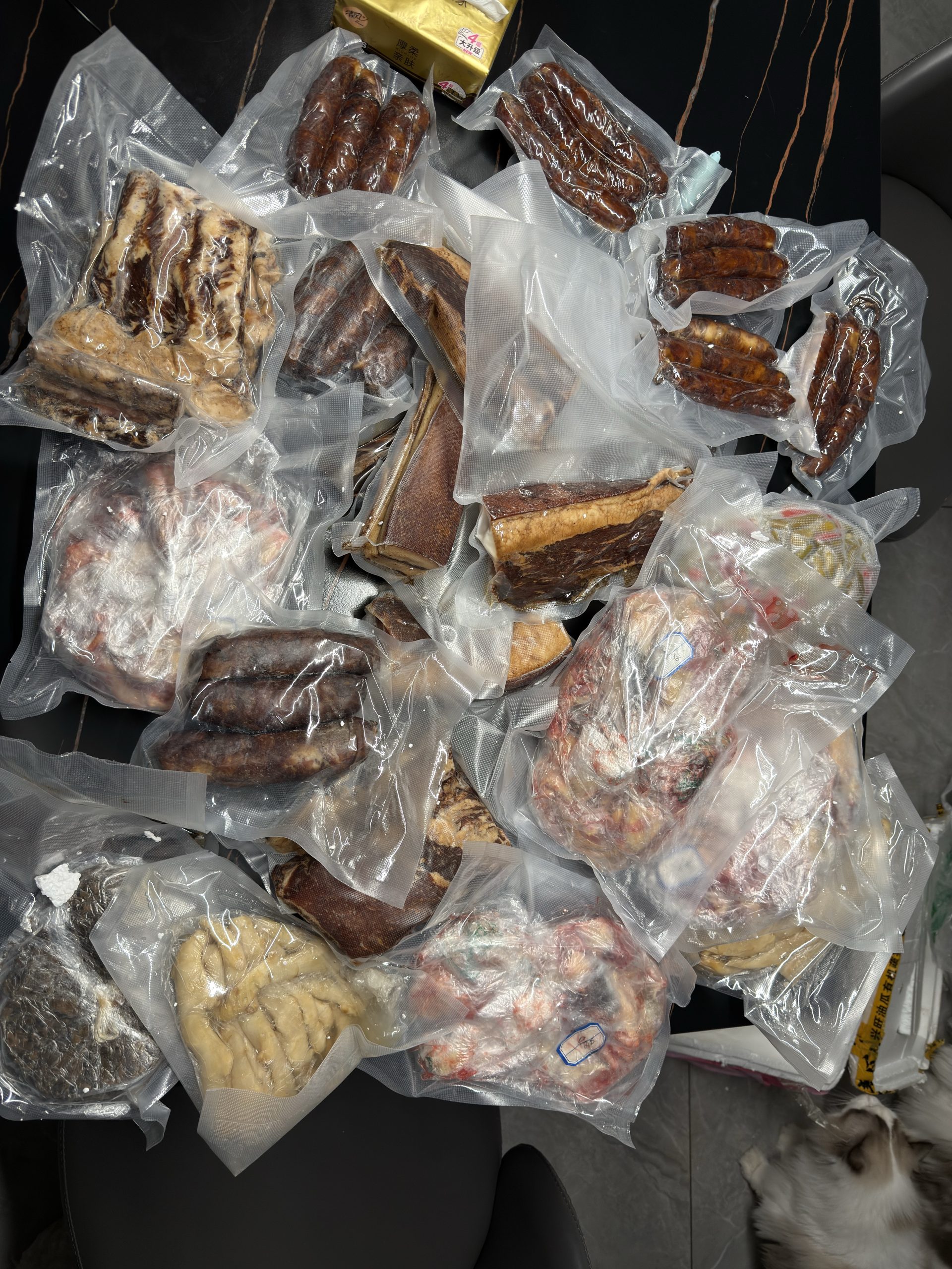 岳父母做的腊肉寄到了,好大一包,看着就好吃。