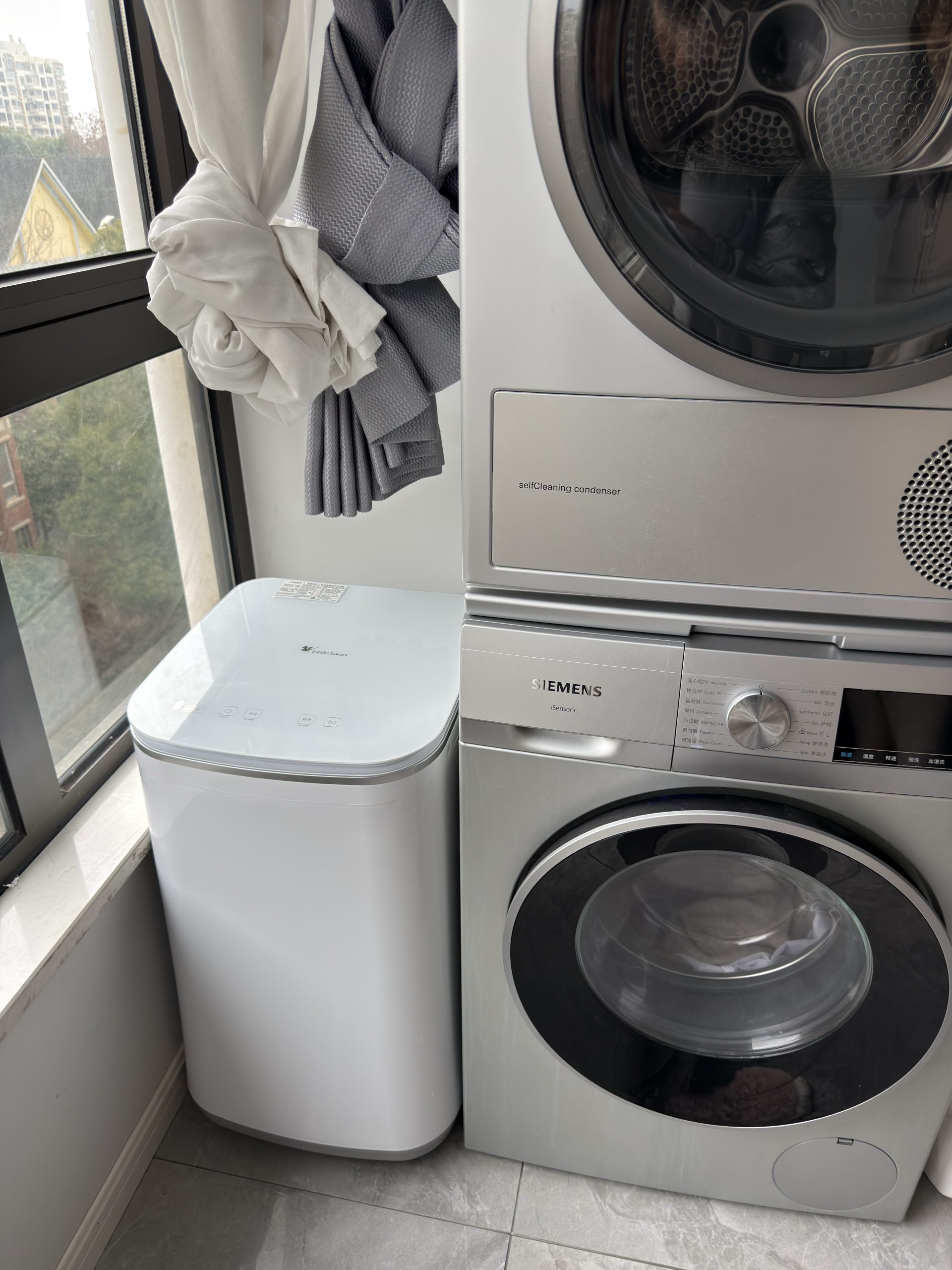 专门买了个洗衣机给宝宝用,今天来装好了。我觉得意义不大,虽说宝宝抵抗力低,成人衣物会带来外界细菌导致交叉感染,普通洗衣液刺激性更强。我是觉得人类身体本质上并未进化到当前时代,需要更早更多的适应各类环境,保护的太好反倒出现各种过敏和体弱体质。不过但从洗衣机来看,影响还没那么大,也不贵,哪怕有一点作用,或者心理作用也值了。