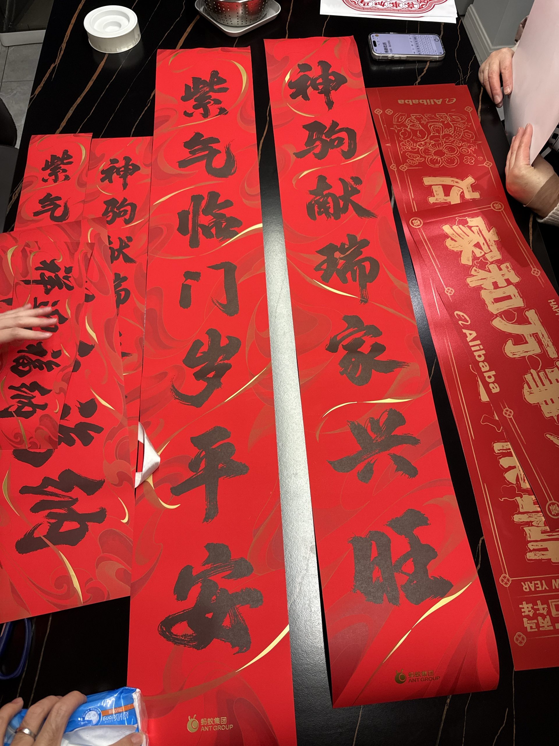 贴春联。今天岳父母和老婆都在大扫除,晚上把窗帘贴了。还学习了下区分上下联,看对联最后一个字,仄声(旺)往往是上联,平声(安)往往是下联,连起来往往是“家兴旺”到“岁平安”。贴对联的时候,要人面向门,右手边贴上联,左手边贴下联。