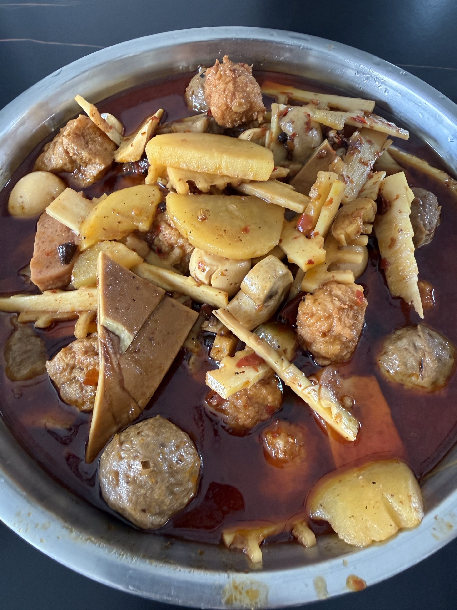 - 中午,吃的冒菜,很好吃,尤其是豆腐泡、丸子、笋。