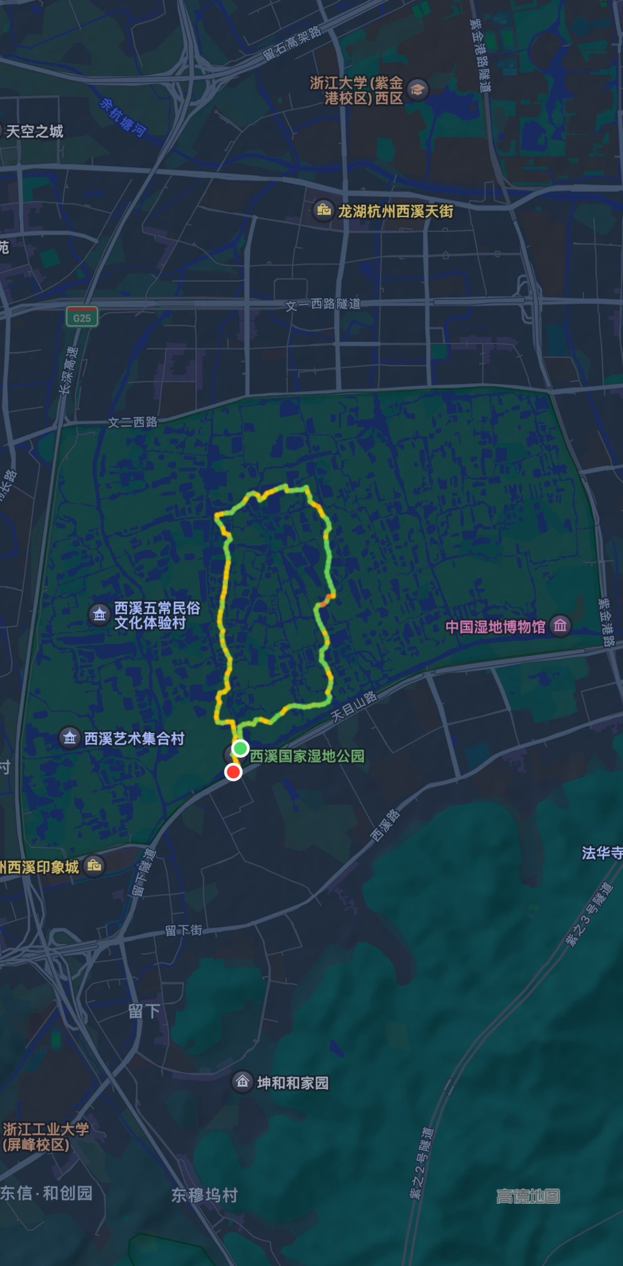 西溪湿地徒步6.59公里,1个小时25分钟。今天热量摄入过高,下午天气不错,就想骑下车,拿上头盔🪖就去西溪湿地,打算走一圈。吹着风,骑着车🏍️,还是很惬意的。骑车十分钟就到西溪湿地了,比开车方便很多,得多来来。进来人还不少,走着发现《非诚勿扰》的拍摄地离得不远,就多走了点,排满了人。最后回程的两公里,脚指头已经有点痛了(不是痛风位置),下次不能走这么大圈,4公里差不多。天气好,每周都可以来走下或者慢跑下。