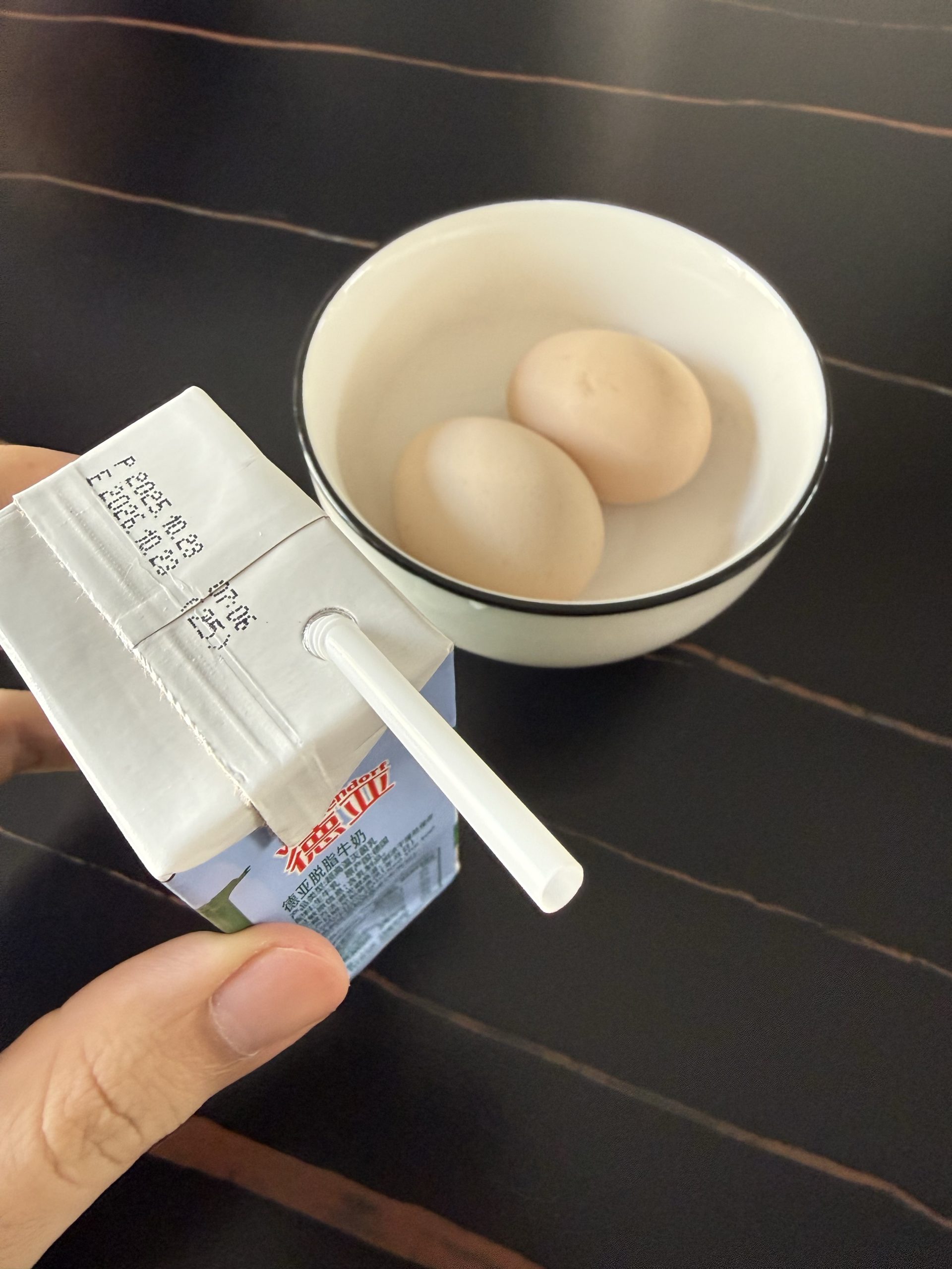 - 早饭,两个鸡蛋🥚一瓶牛奶🥛。