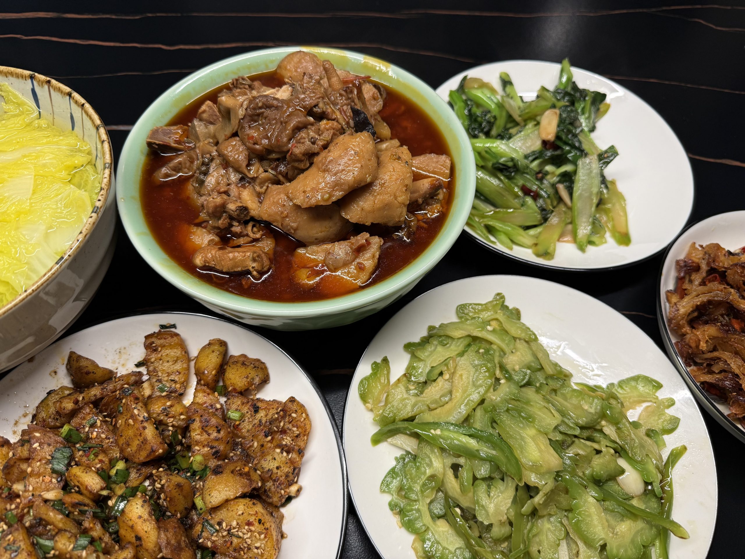 - 晚餐,7分饱,芋儿肥肠鸡。