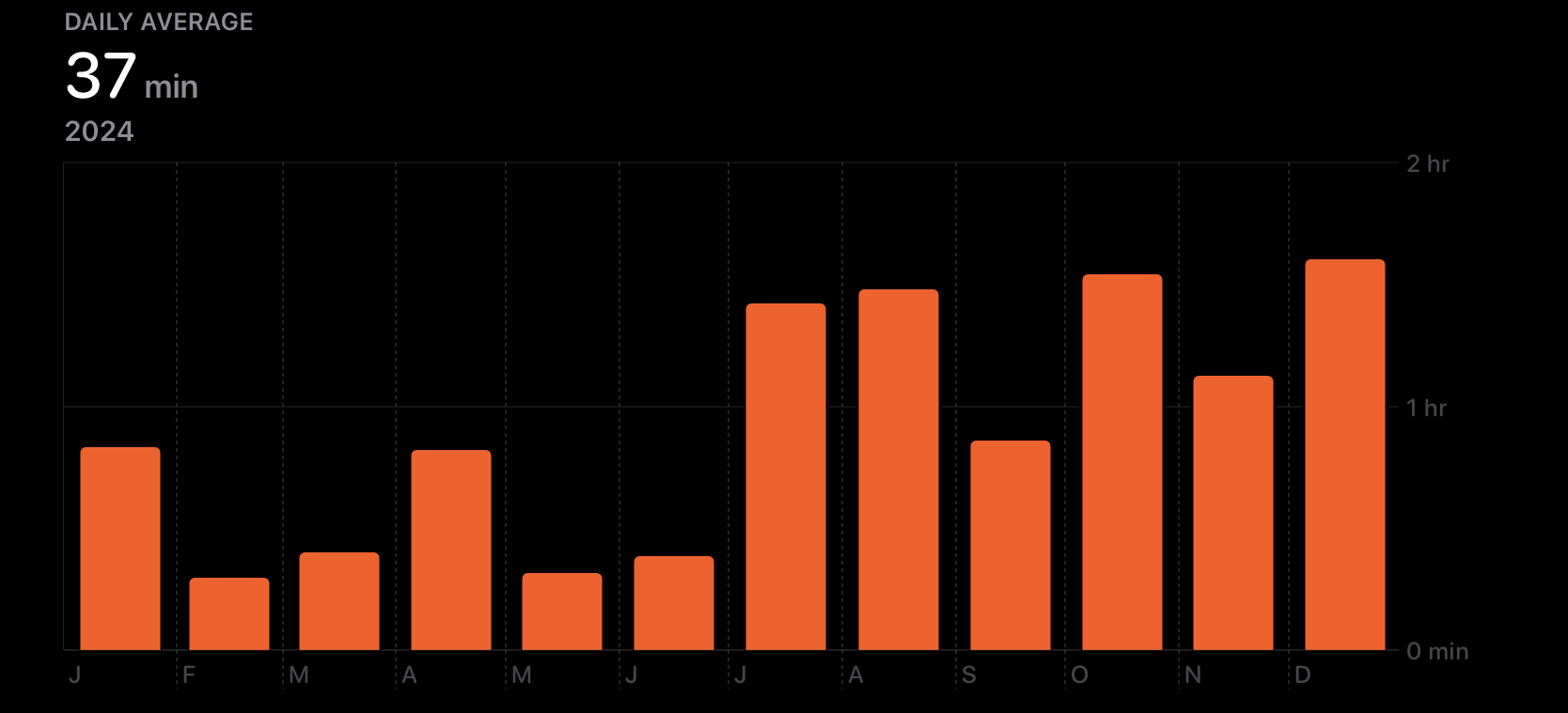 完成了774天连续打卡,英语学习时间相比去年增长100%,累计达5780分钟。英语成绩从10+分提升至108分。中间有一段时间,我每天疯狂练习几十分钟,持续十几周保持多邻国最高钻石等级,单词量、拼写、语法、发音和听力都得到明显提升。现在,我可以无障碍阅读Twitter和主流新闻,也能够更流畅地撰写年度总结。
