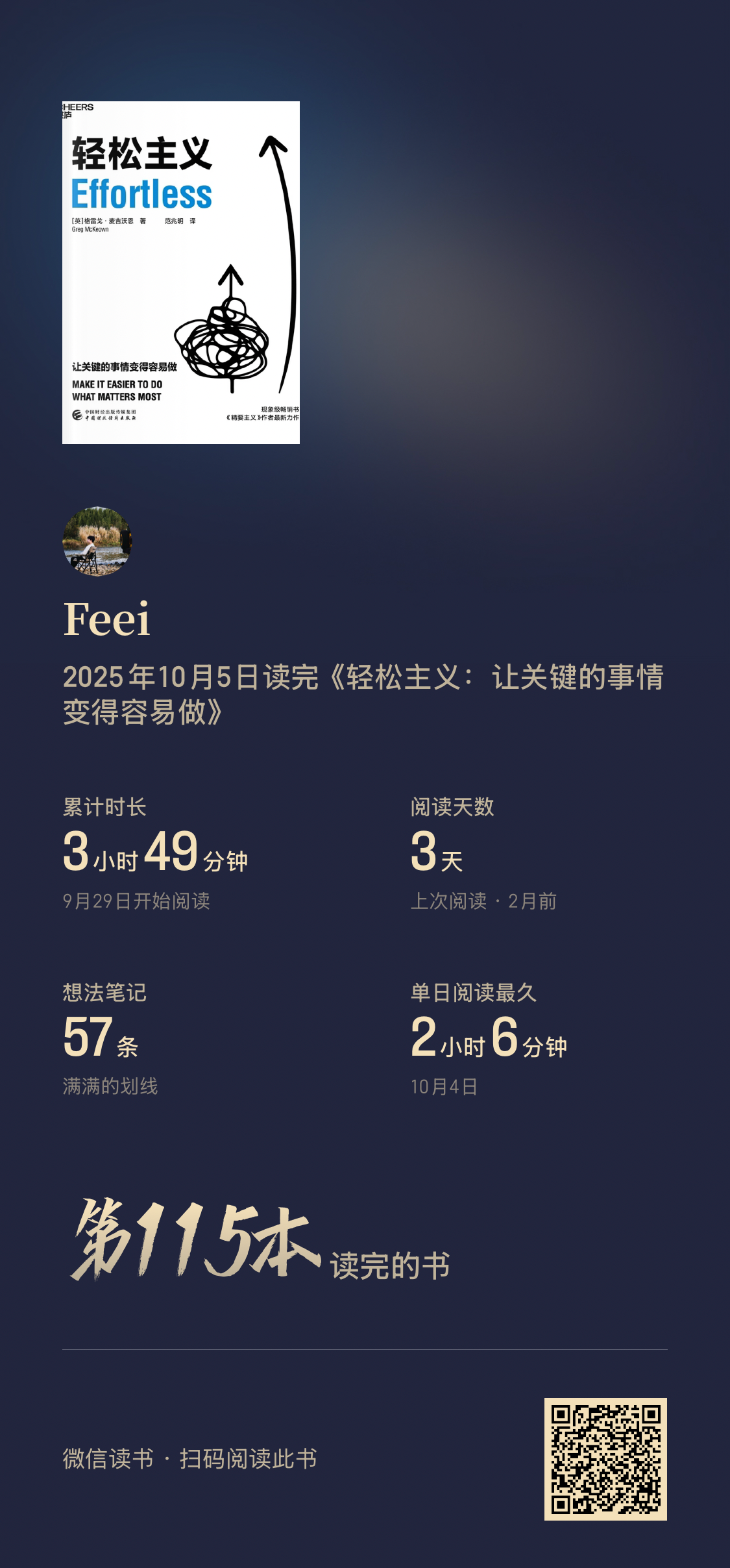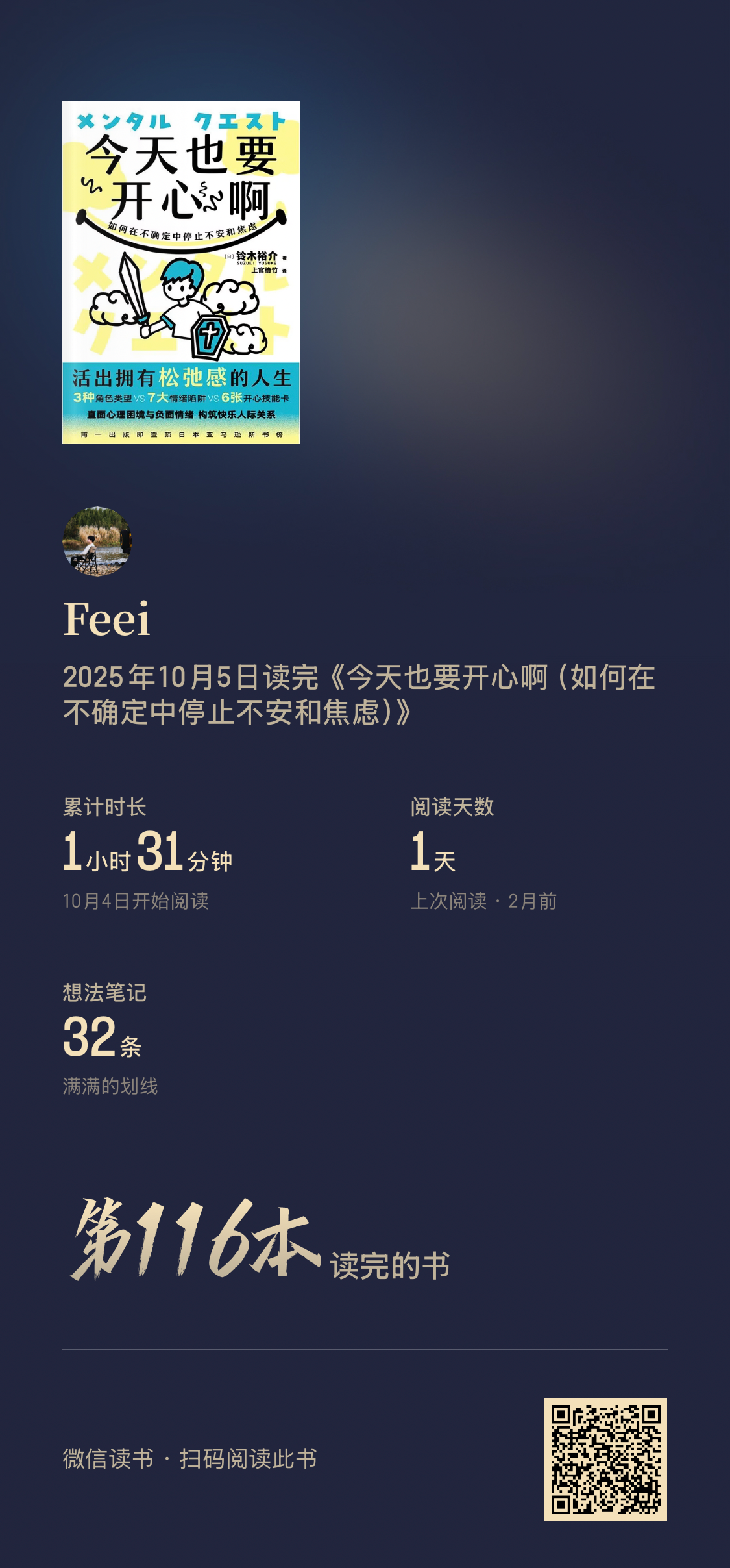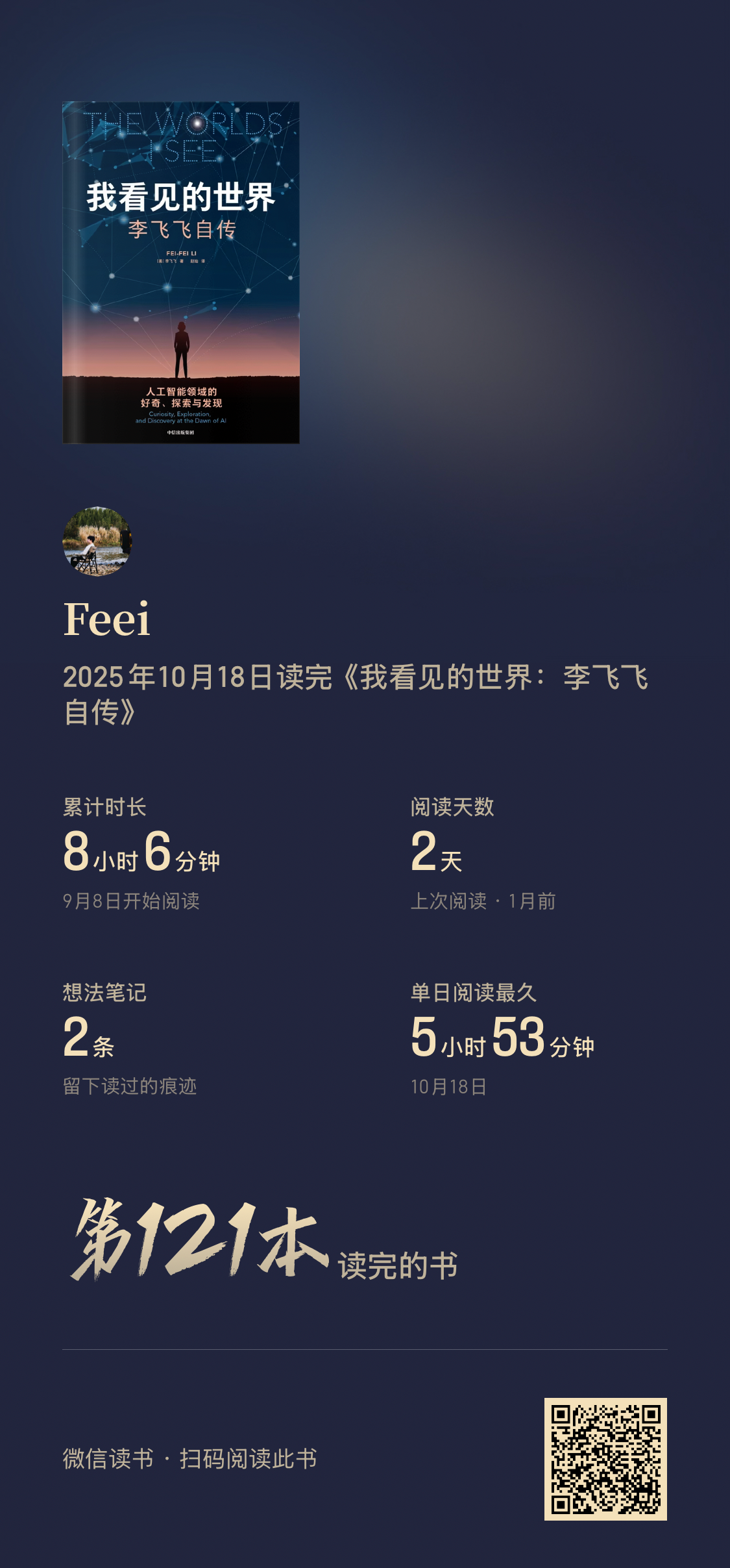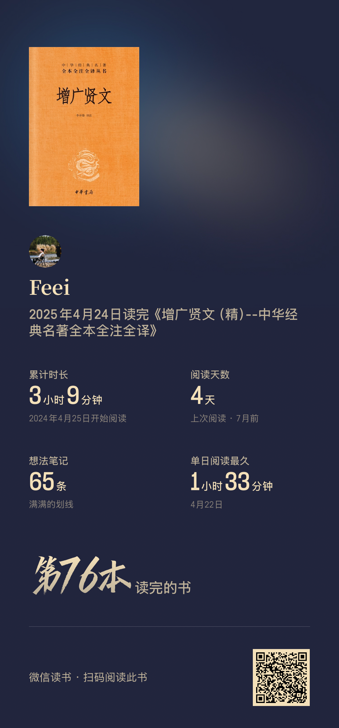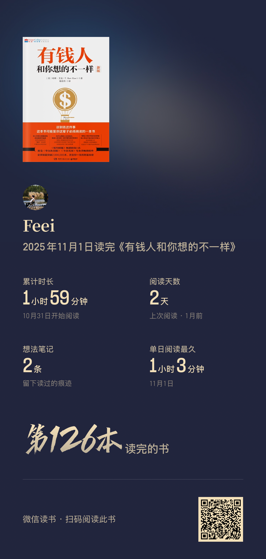 阅读完74本书,阅读时间较去年增加127%(超过355小时)。平均每天60分钟阅读,9月和10月阅读量最大。