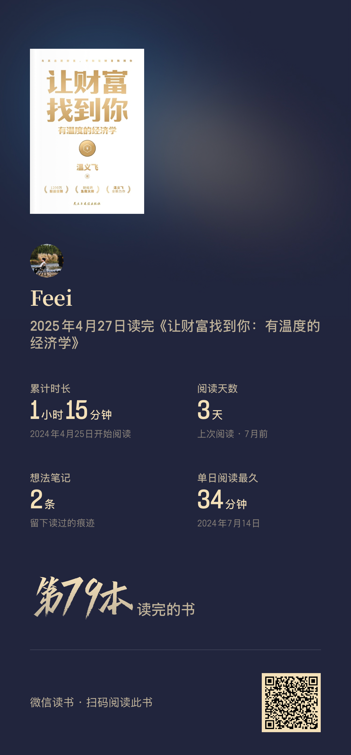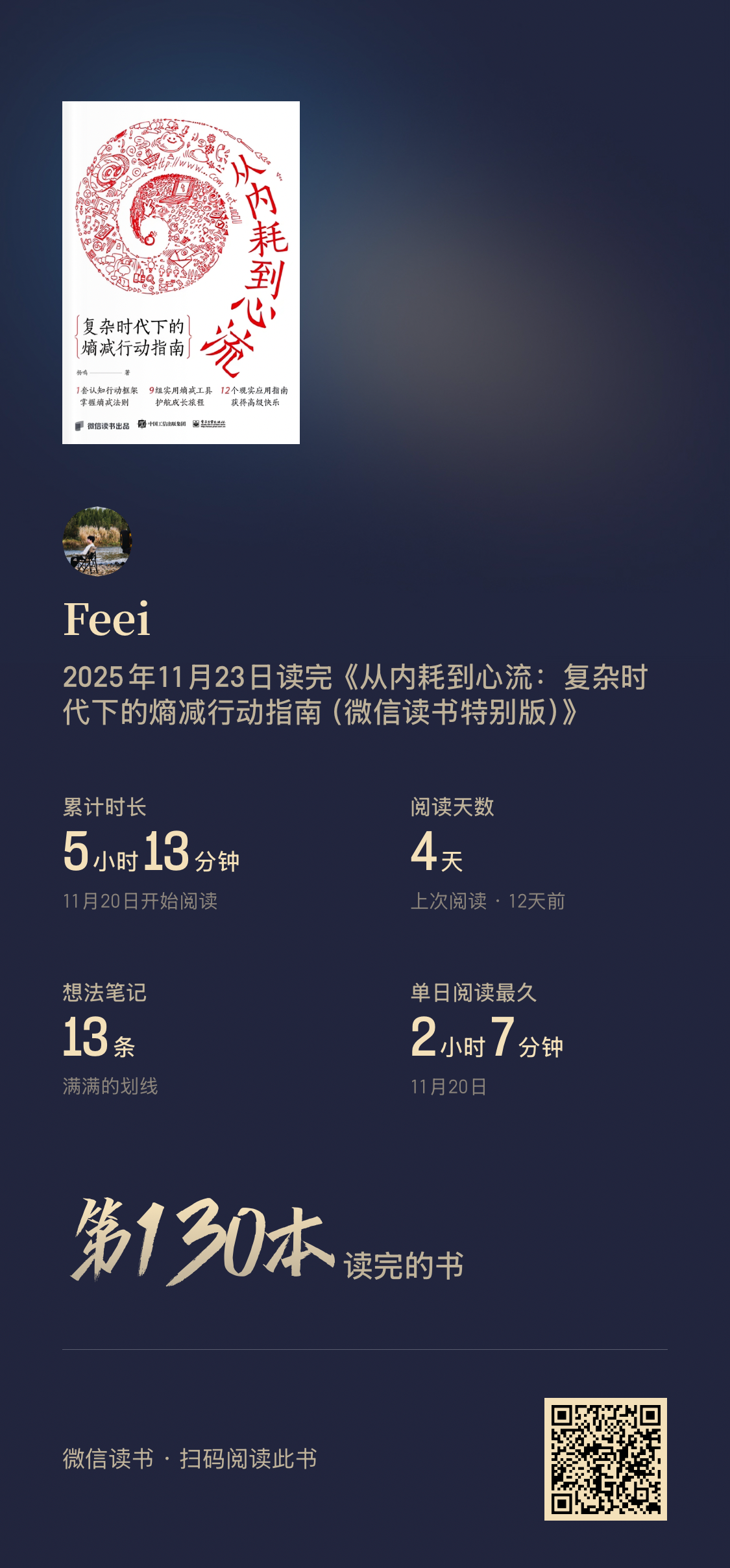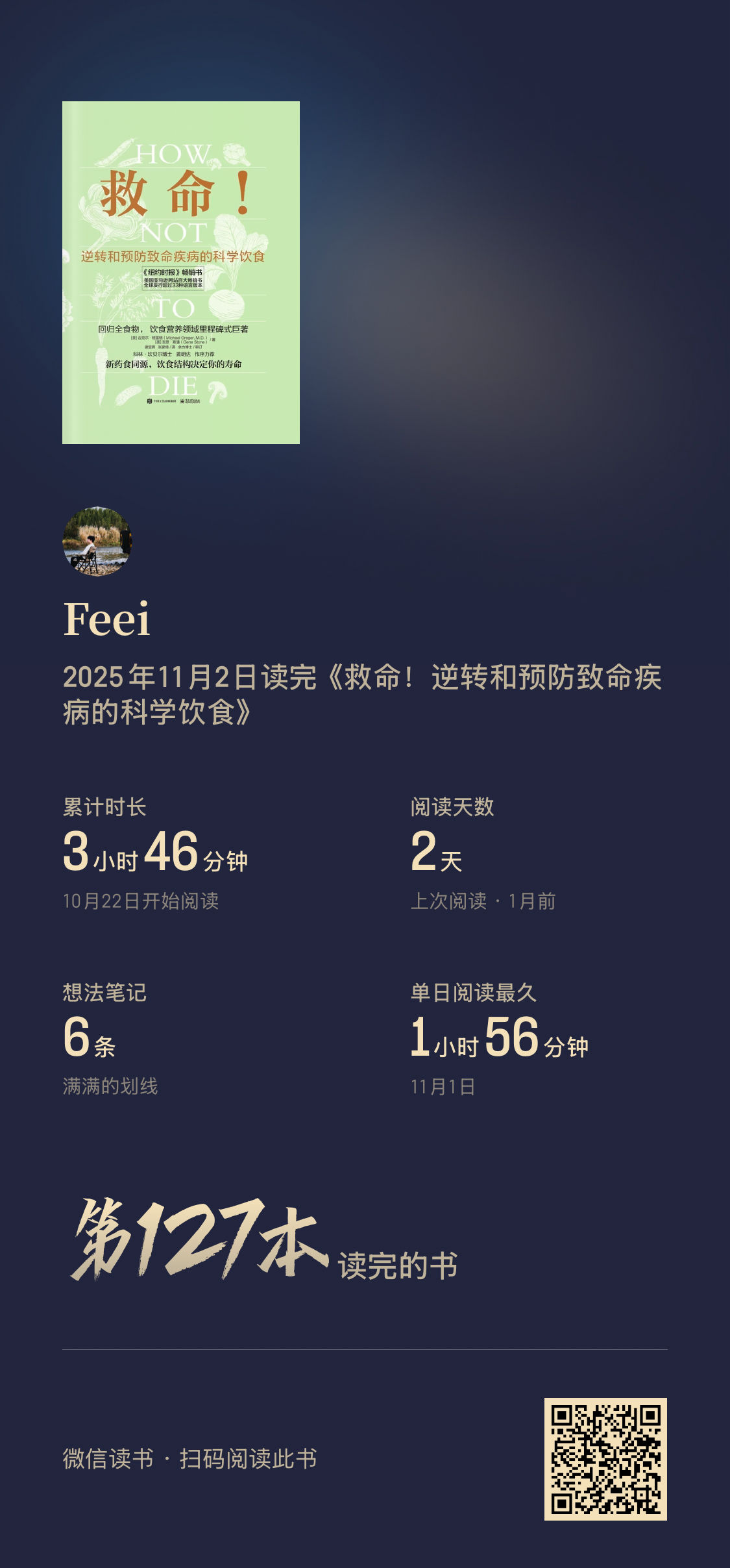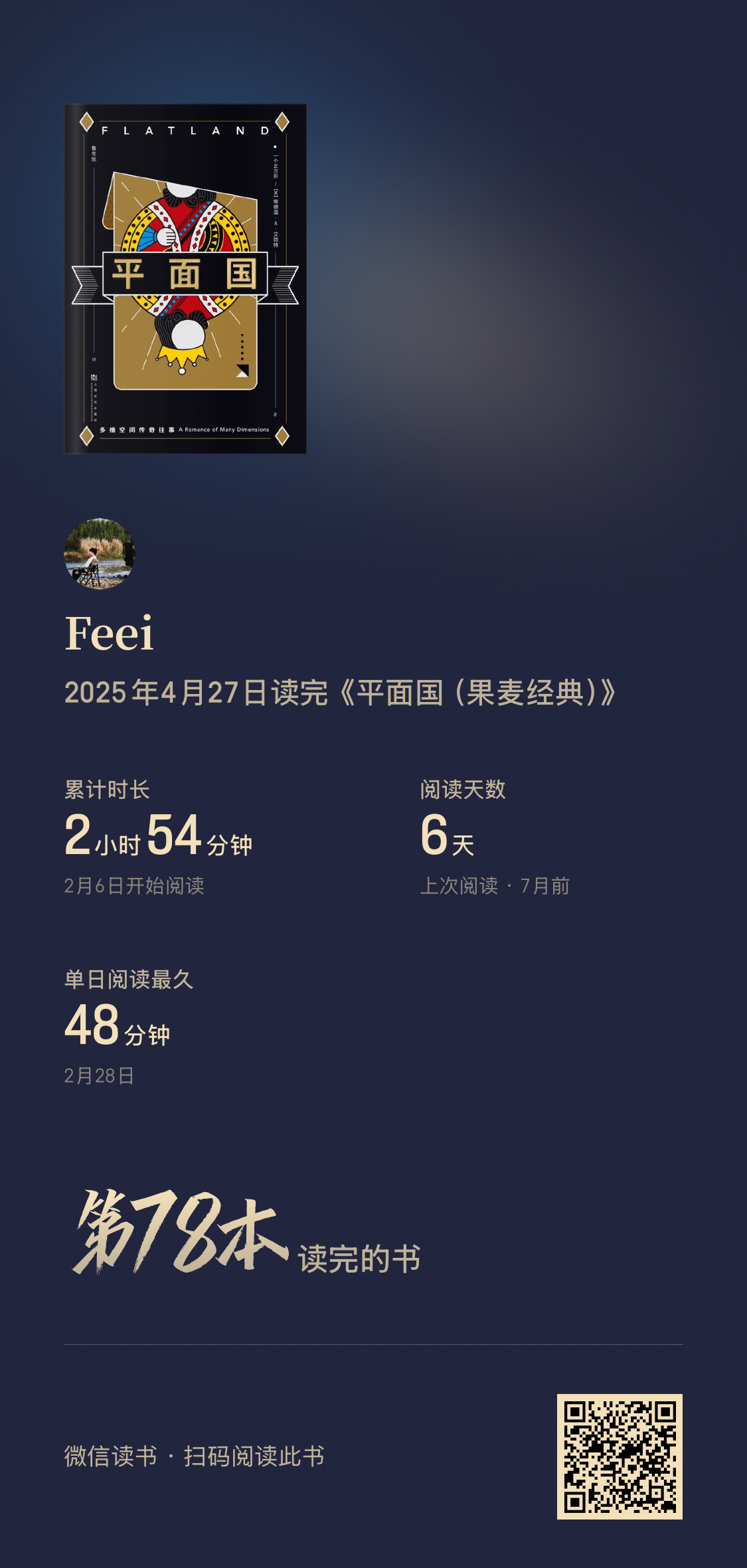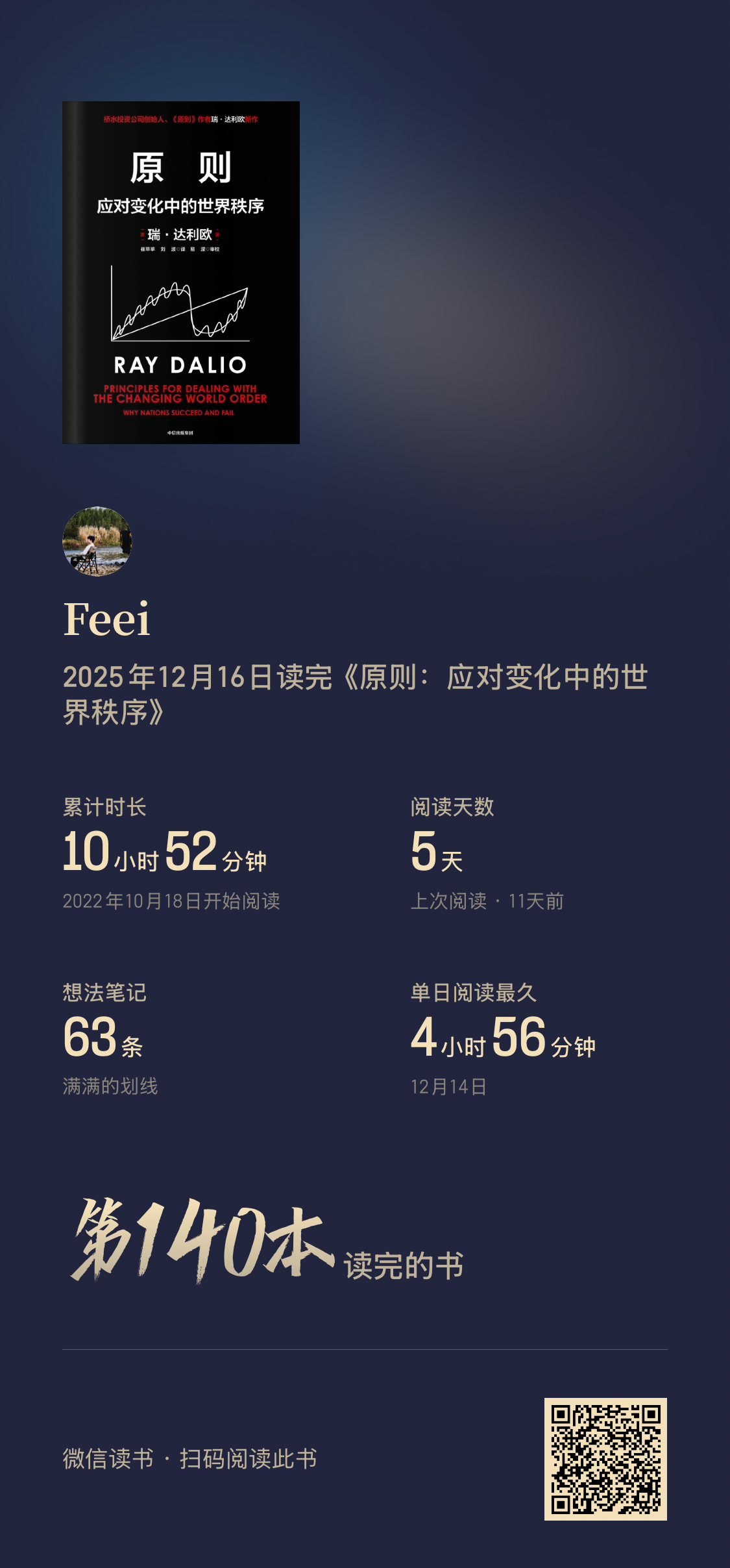 阅读完74本书,阅读时间较去年增加127%(超过355小时)。平均每天60分钟阅读,9月和10月阅读量最大。