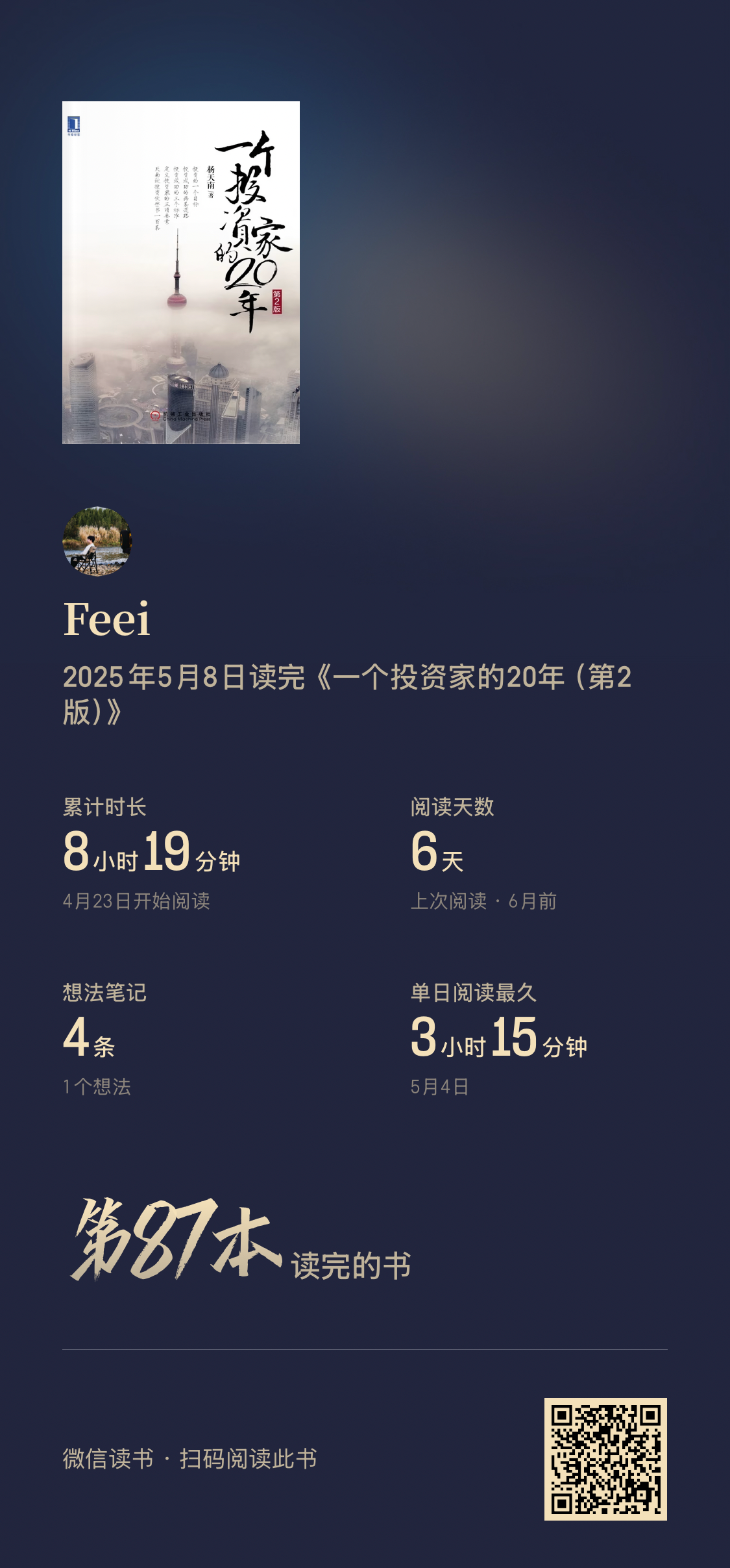 今年阅读主要围绕认知、健康、管理、经济与投资。有很多高质量书籍,推荐成事(《赢》)、传记(《源代码》)、管理(《知行》)、投资(《一个投资家的20年》)、人文(《人间杭州》)。